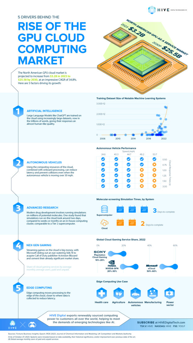 In this visualization for HIVE Digital, we look at five drivers behind the growth of the GPU cloud computing market.