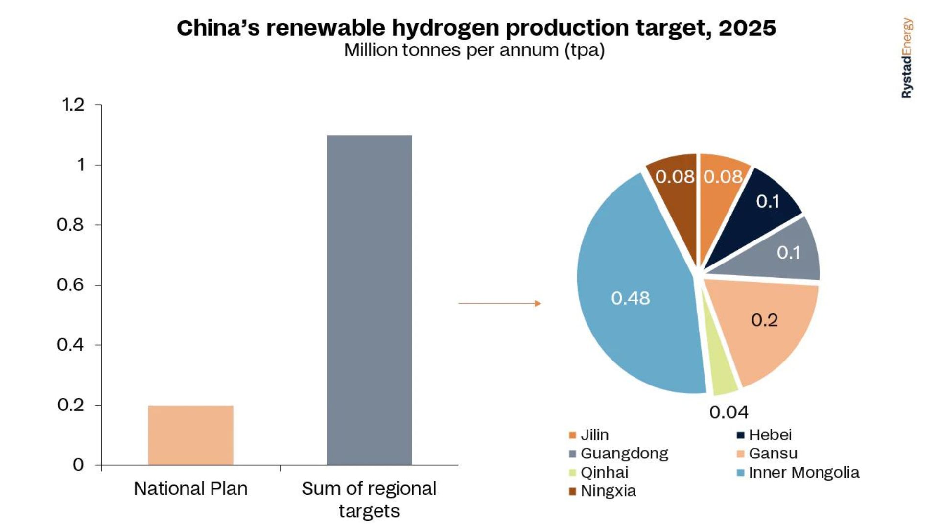 In terms of hydrogen generation, China features a geography mismatch. The hydrogen demand hubs are located in the east, while renewable energy resources are abundant in the north, including regions like Inner Mongolia and Gansu.