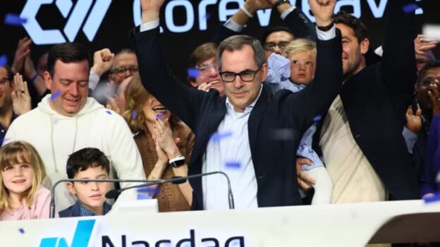 With Monday’s rally, CoreWeave shares have tripled since their IPO, and the company is now valued at more than $58 billion.